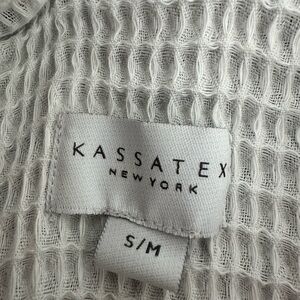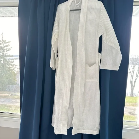 Cozy white waffle knit robe with pockets. Perfect for lounging.