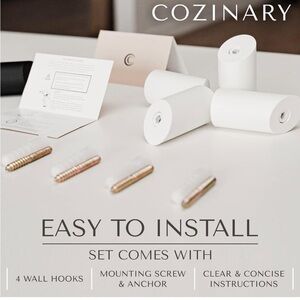 Set of white wall hooks. Includes screws and anchors. Ideal for towels and more.