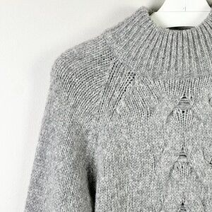 White & Warren Alpaca Wool Blend Mock Neck Sweater. Relaxed slightly oversized fit. Ribbed mock neck, hem, and cuffs. Large subtle cableknit design fown front. Materials: 32% Alpaca, 12% Merino Wool, 22% Polyamide, 34% Acrylic. No known flaws.