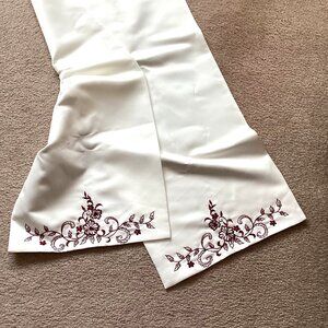 White Wedding Christening Rectangle Table Runner Red Embroidery Beads Linens
