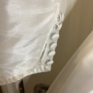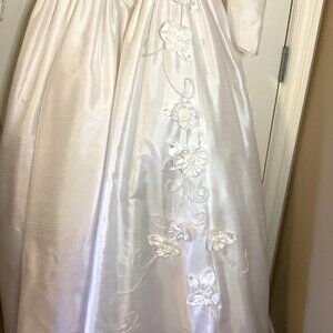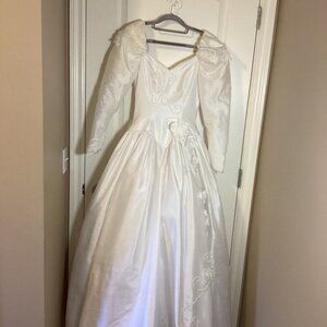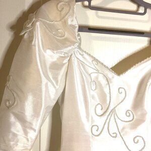 White Wedding Dress Long Sleeves Small Trail Flowers Beads Big Bow Bridal