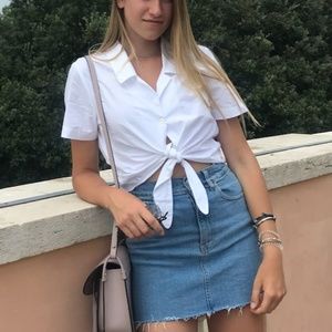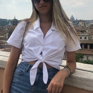 Super cute white front-tie short sleeve button up that I don't wear anymore. I wore it only 2-3 times so it is in great condition (9/10). It is size Small and I bought it at Aritzia.