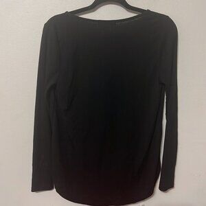White Willow Long Sleeve Textured Button Front Top In Black Small