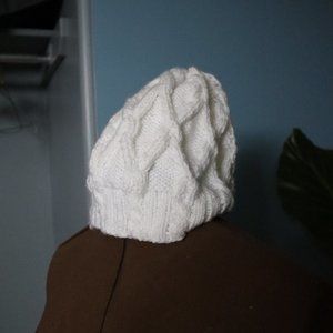 White winter hat with cableknit