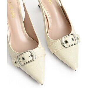 Sleek Closed Pointed Toe Slingback Heels: Our slingback pumps heels feature a closed pointed toe silhouette, exuding sophistication and charm, while the buckle strap adds a dash of coolness and allure.