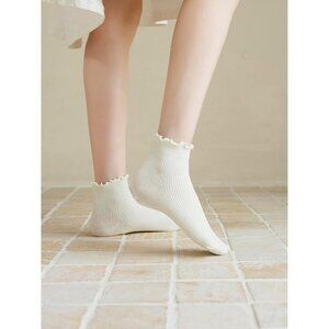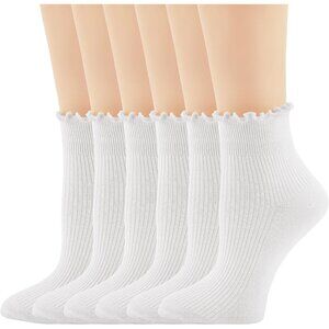 White Women's Ruffle Ankle Socks 6 Pairs Cute Frilly Cotton Crew Socks