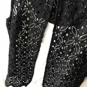 This stunning piece has a white tanktop as a base with a black lace overlay. The two pieces are connected but could easily be separated into two pieces. The material is stretchy, and extremely comfortable.