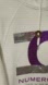 Stylish white hoodie with a bold purple and silver sequin logo design. Features a front pocket and drawstring hood.