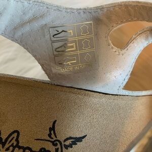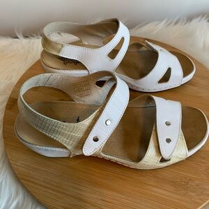 White and Tan Sandals with Perforated Strap Design
