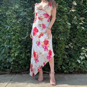 White and pink floral asymmetrical maxi dress