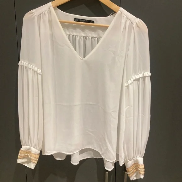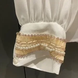 White Zara blouse with embroidered beads detail at wrists Never worn, slightly see through