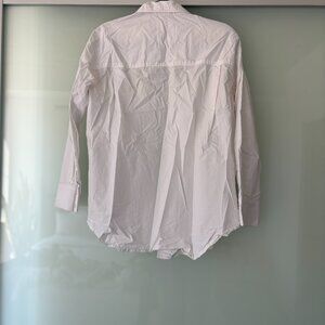 Oversized, baggy, white collared button blouse from Copenhagen Part Two. Size 32 or small. crisp, casual white button up for work or going out. I have had this for a year and a half and have worn it six times.