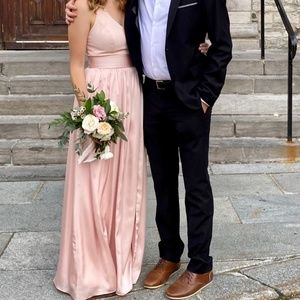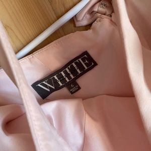 Vera Wang White Collection, size 6. Altered length to 5'5.5 with 2 inch heels. Blush color. Removable belt and hidden side pockets!