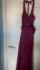 White By Vera Wang Dress, in excellent condition. Deep Burgundy colour, A-line maxi fit, high 28” front slit, unique T bar back with removable clasp bow detail, 13” hidden back zipper, boned detail in side of bust, removable waistband belt and pockets. Marked size 6.