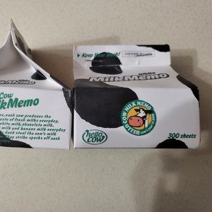 This memo pad is brand new. It comes with 300 memo sheets. It measures approximately 7 cm x 7 cm. The milk boxes do have some damage but that does not affect the memo sheets inside.