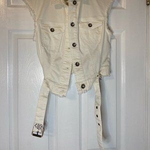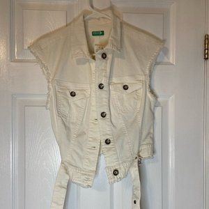 White denim vest with belt buckle, size S, United Colors of Benetton