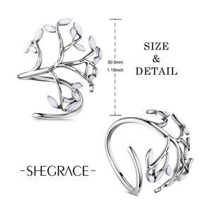 SHEGRACE Elegant Rhodium Plated 925 Sterling Silver Finger Rings, White Enamel Leaves,