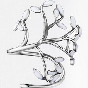 White enamel leaf adjustable wrap ring in 925 sterling silver Big Dramatic NWOT