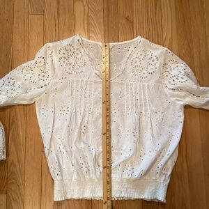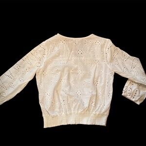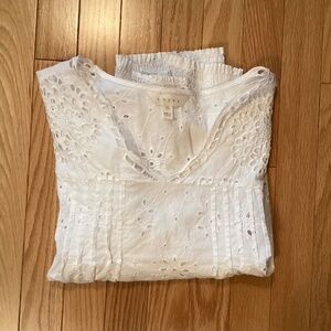 This is a pretty blouse. White + eyelet is perfect for summer! Selling as I have too many white blouses.