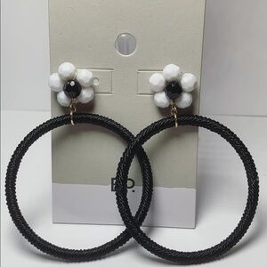 Fashion Jewellery - White flower Black hoop dangling BP earrings