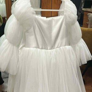 2× size 3, 1× size 4, 1× size 7 - 75$ each. There are 4 dresses total. Worn once for 2 hours. Retail 125$ each. Perfect for wedding, communion,baptism,party, flowergirl