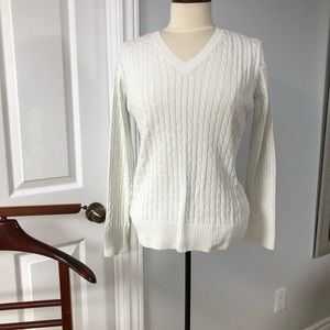 Lightweight white knit sweater. Timeless classic style. 100 % cotton