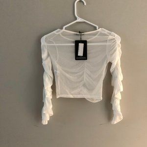 White mesh long sleeve crop