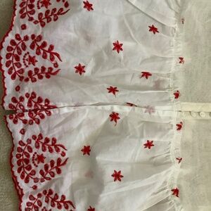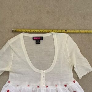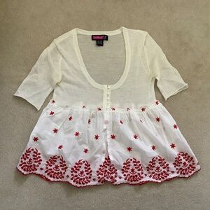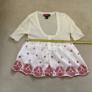 White mesh top with red embroidered