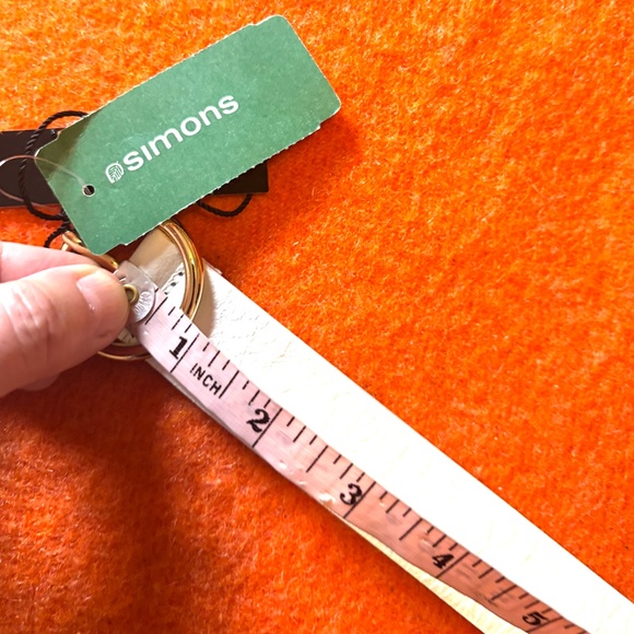 White minimalist Italian leather round buckle belt made in Canada new with tags. Matte texture, metallic geo accent that elevates any contemporary look, soft and suple real Italian leather, accent round, gold metal buckle, made in Canada. Width: 27 mm. Marked size L Large, please see pics for other measurements. This item comes from a smoke free, pets friendly home. Recycled bags/box used when possible. Please, let me know if you'd like any additional pictures and/or measurements or other info. Thanks for looking!