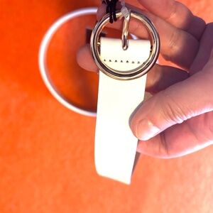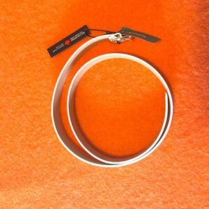 White minimalist Italian leather round buckle belt made in Canada NWT