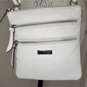 White Vegan Leather triple Zippered front Mini Crossbody Shoulder Purse, by Mia DeLuca.