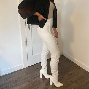 Soft white pants with lines perfect for fall and winter can dress up or down.