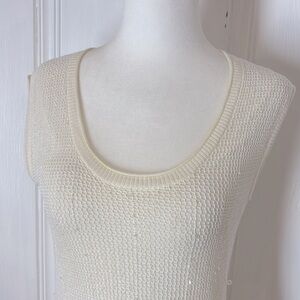 Stunning off white dress with a crochet over layer and very subtle sequins. It can be worn on its own or over a pair of jeans or a leggings.