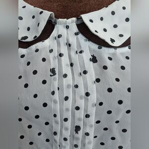 White sheer chiffon polka dot bunny print blouse Peter Pan collar size S