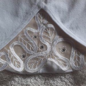 Unbranded, I cut the tags as they were itchy! Worn a few times, button down front. The lace accents are not quite as dark as they show in the pictures.