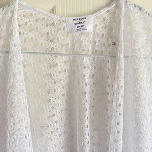 White lace with detailed flutter at arm openings and ruffled lace bottom hem