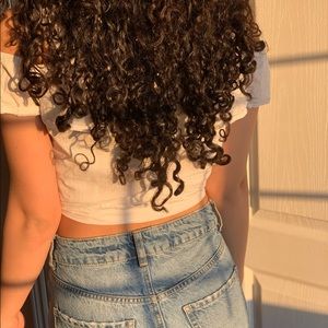 Open shoulders can be tied or buttoned all the way down. Cute. Aesthetic. Cropped white shirt. Shirt with knot. Thin white material.