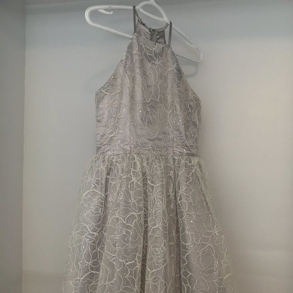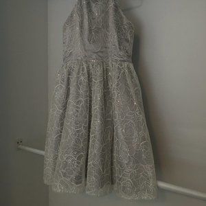 Beautiful white and grey dress with white floral detailing. Wore once on graduation.