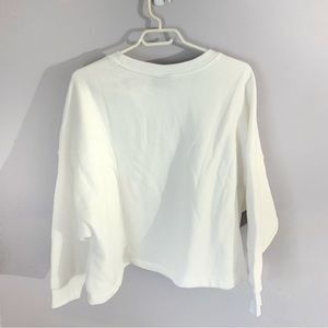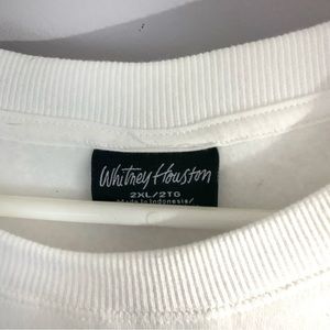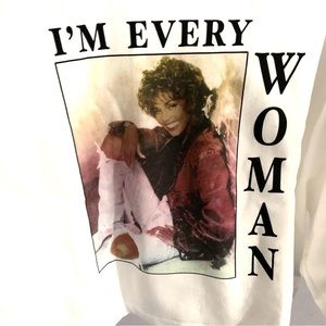 Details - White cropped pullover sweater, Whitney Houston "I'm Every Woman" lyrics.