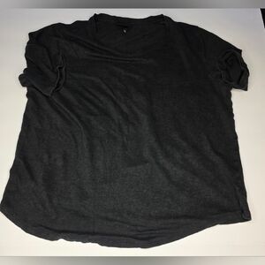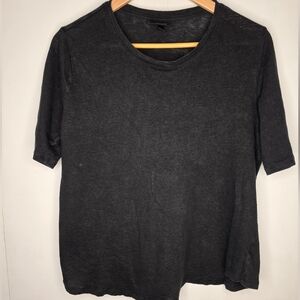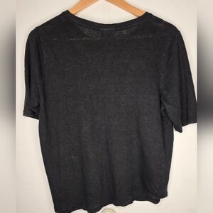 Lightweight linen top with some stretch. short sleeves, scoop neck, feminine cut with slight flair to hemline.