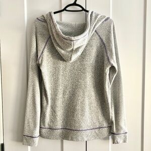 *Heather Grey, With Purple Stitching, Graphic Lettering, and Hoodie draw sting