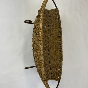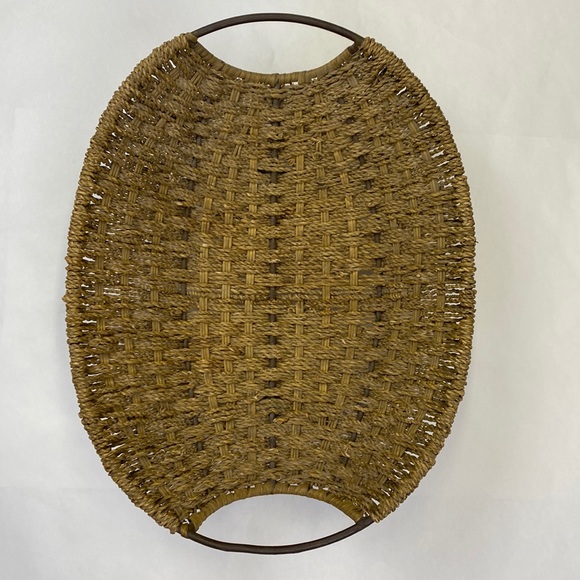 This amazing accent piece is in amazing condition. The wicker (roping) is different colors of brown with metal handles, frame and legs.