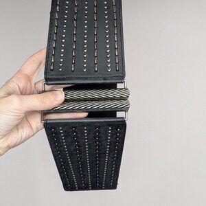 Wide Elastic Belt with Metal Clasp Rivets Silver Black