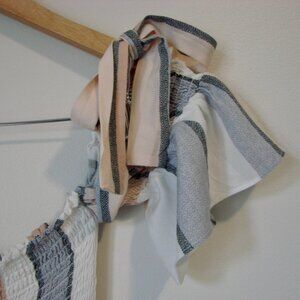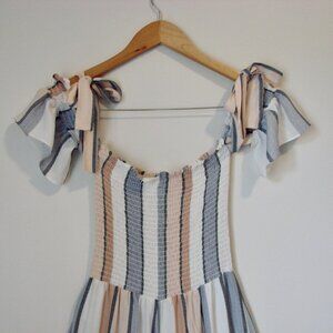 Wide Leg Jumpsuit Smocked Top Striped Off Shoulder Ocean Drive Beach Medium