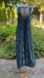 Lightweight flowy jumpsuit made by Turkish company Los Banditos. Two viscose fabrics. The main fabric is two/tone blue with a cool retro design. The yoke is a textured Ultrasuede-like feel with peace signs. Aged gold colour zipper.