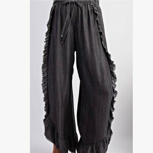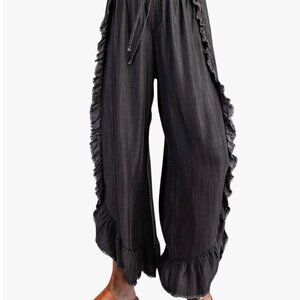 Wide Leg Ruffled Frayed Hem Elastic Tie Waist Pants