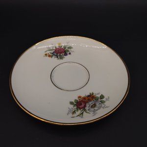This is a wide mouthed teacup & saucer made by Joseph Kuba (JKW) in Carlsbad, Germany between 1952 & 1972. It is decorated with bouquets of flowers and gold trim. It is white though in some of the pictures it appears brown (I am still a rank amateur when it comes to photography).