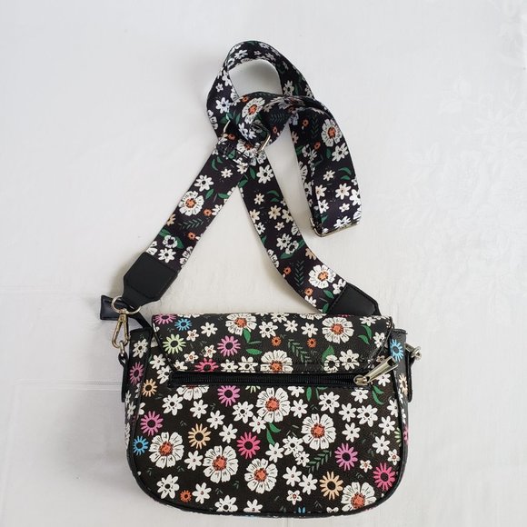 Wide adjustable length strap, Colorful floral, Vegan Leather Crossbody Shoulder