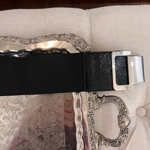 Wide elastic belt with silver clip