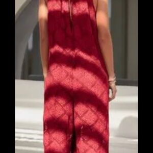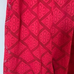 Red lace jumpsuit from Next Uk, wide leg, cotton lined to the thigh, button open and closure at the back. Uk size 18, US 16. NWT. P to P 24, length from shoulder 57”.